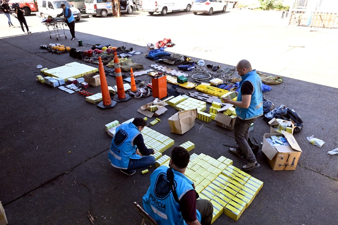 Además, también hallaron elementos de uso bomberil como cascos, chalecos, equipos de respiración, pantalones, matafuegos, maniquíes de primeros auxilios, mangueras, máscaras, tablas de rescate, una motosierra, inmovilizadores,y tres vehículos.